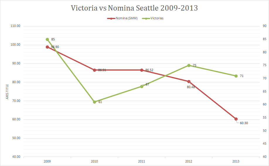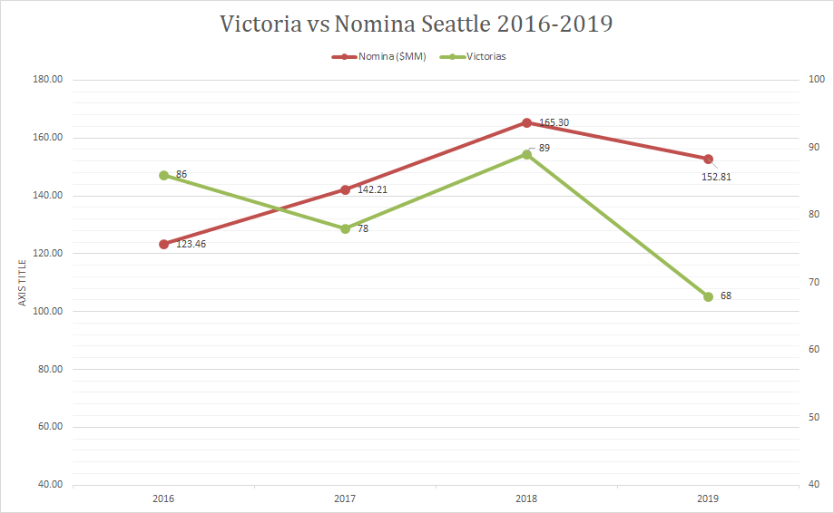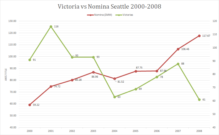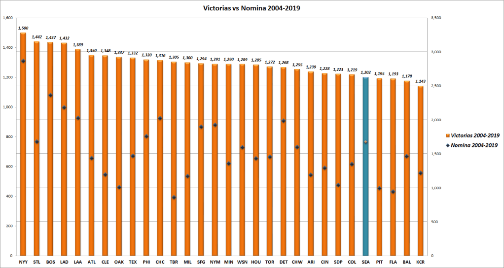 Los Marineros son el equipo con la mayor cantidad de tiempo sin jugar un juego de postemporada en toda la liga, el único sin disputar ni siquiera un juego de Serie Mundial en su historia y peor aún, sin ninguna esperanza de que esto cambiará en los próximos años. Ha sido un equipo sin rumbo, con un liderazgo perdido y con poca producción de sus granjas . Las decisiones han sido nefastas y la organización parece vivir en una eterna reconstrucción. Desde 2004, sólo 4 equipos (Miami, Pittsburgh, Baltimore y Kansas City) tienen más derrotas que Seattle con la diferencia de que estas franquicias manejan nóminas muchísimo menores y TODAS han podido jugar algún juego de playoff, incluso han ganado una que otra serie mundial. Otros equipos como Oakland, Tampa Bay, Cleveland, Texas o Atlanta con inversiones inteligentes, cambios acertados y el desarrollo de peloteros en sus granjas acumulan muchos más éxitos que Seattle a pesar de gastar, en algunos casos, la mitad de dinero.