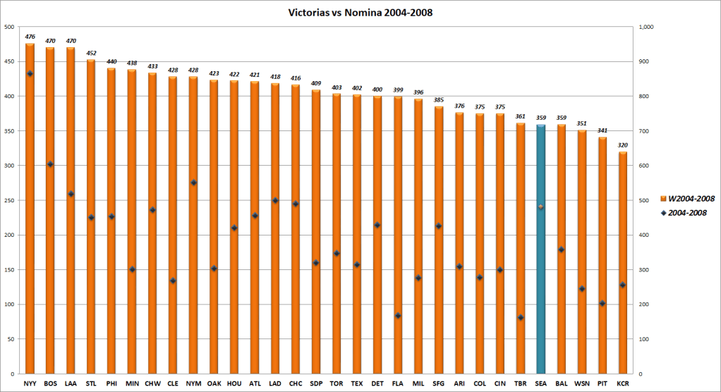 Seattle terminaría con 450 derrotas en esos 5 años (casi 200 más que las acumuladas con Gillick), el 4to peor equipo de la liga. Esto a pesar de contar con la octava nómina más elevada, muy por encima de otros conjuntos que participaron en las Series Mundiales de esos años como St.Louis (2004 y 2006), Houston (2005), Detroit (2006), Colorado (2007), Tampa Bay o Philadelphia (2008).