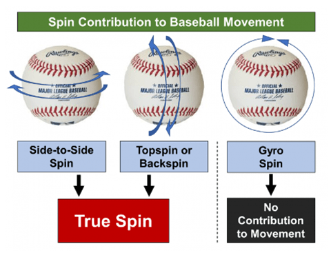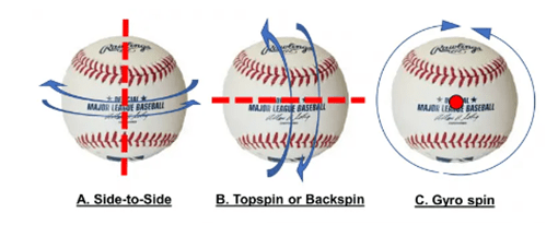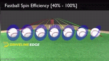 Pero no sólo la tasa de giro o Spin Rate influye sobre el movimiento de la pelota, también la eficiencia de giro o «Spin Efficiency» hace que una pelota se mueva más o menos verticalmente.