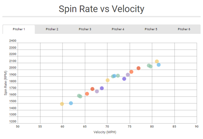 Por ejemplo, dos rectas a 90 MPH, con 2300 RPM y lanzadas desde el mismo punto de salida pero una con 95% de eficiencia y otra con 80%, tendrán diferentes quiebres verticales, siendo la de mayor % la de mayor elevación.