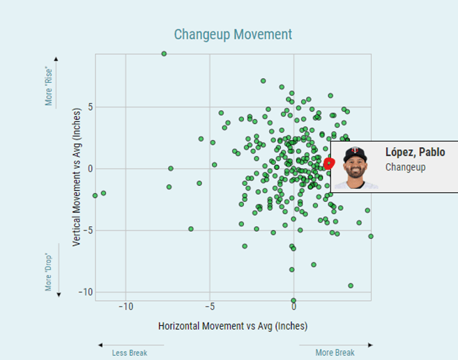 Ya para finalizar, Lopez tiene un repertorio amplísimo, con 5 lanzamientos que pudieran ser 6 si volviera a su Cutter de 2021 lo cual sería ideal para ser aún más dominante ante zurdos, pero además tiene un comando bien arriba del promedio en cada uno de sus envíos y la secuencia de pitcheos desde que llegó a Minnesota ha dado un paso más allá dentro de su plan de juego.